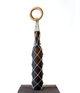 El Porta Botellas Palmeta combina malla de nailon y aros de madera, materiales que se equilibran entre resistencia y naturalidad.